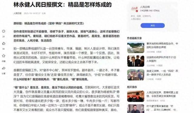 有人惊讶:“林永健什么时候成了人民日报关注的对象?” 也有人直言:“终于有人替观众出头了!” 他说: “现在一些明星在剧组拿着高片酬,却不认真读剧本,甚至随便改戏,这种风气必须得刹住。” 这一句话,说得不激烈,却戳中圈内痛处。