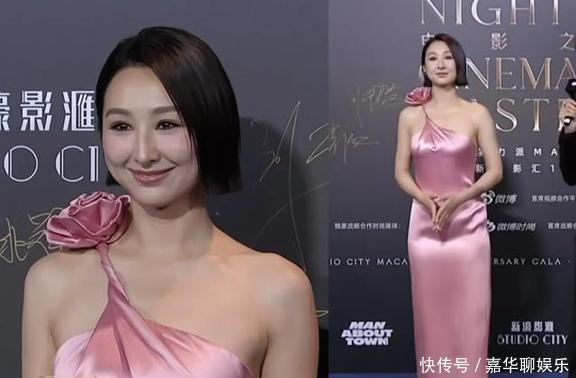 高海宁穿了一条粉色的不规则肩带长裙,显得身材既匀称又很健康。她的苹果肌好像鼓起来了,眼下的卧蚕也显得没那么明显了,跟以前比起来看着没那么自然,不过气质还是不错的。