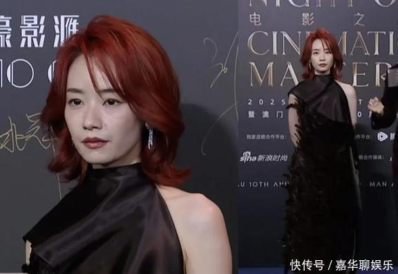 刘雅瑟今天不再是以往的黑发,改成了醒目的红发,还特意搭配了一双红色的鞋子,真是让人眼前一亮。红头发挺炫的,但那双看起来像用绳子绑成的红鞋就有点看不太懂了。