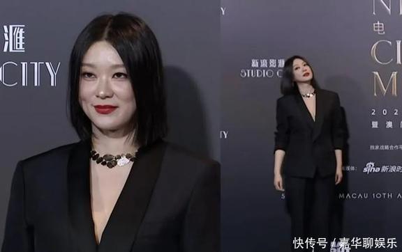 主攻文艺片的女演员黄璐穿了一套V领西装,可不是那种现在流行的宽松款式,穿上去倒像是某个大酒楼的经理,正忙着筹备袁娅维的婚礼呢。